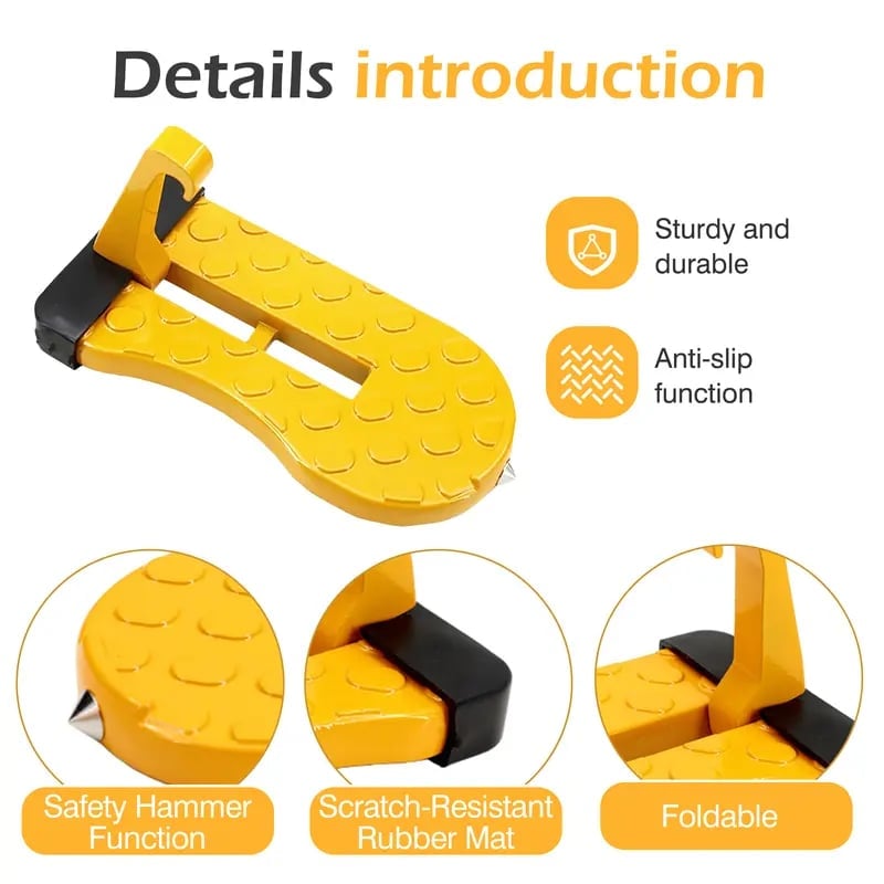 Portable- The combination of the car pedal and the safety hammer is folded and designed for easy carrying and storage,and does not take up space in the car.