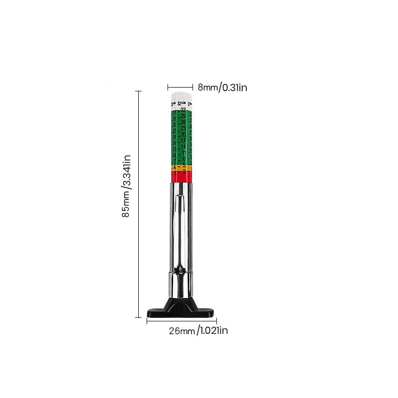 Measures tread groove depth precisely down to 1 mm for reliable tire maintenance.