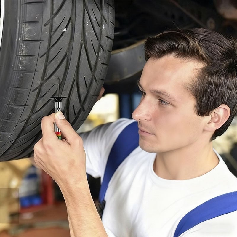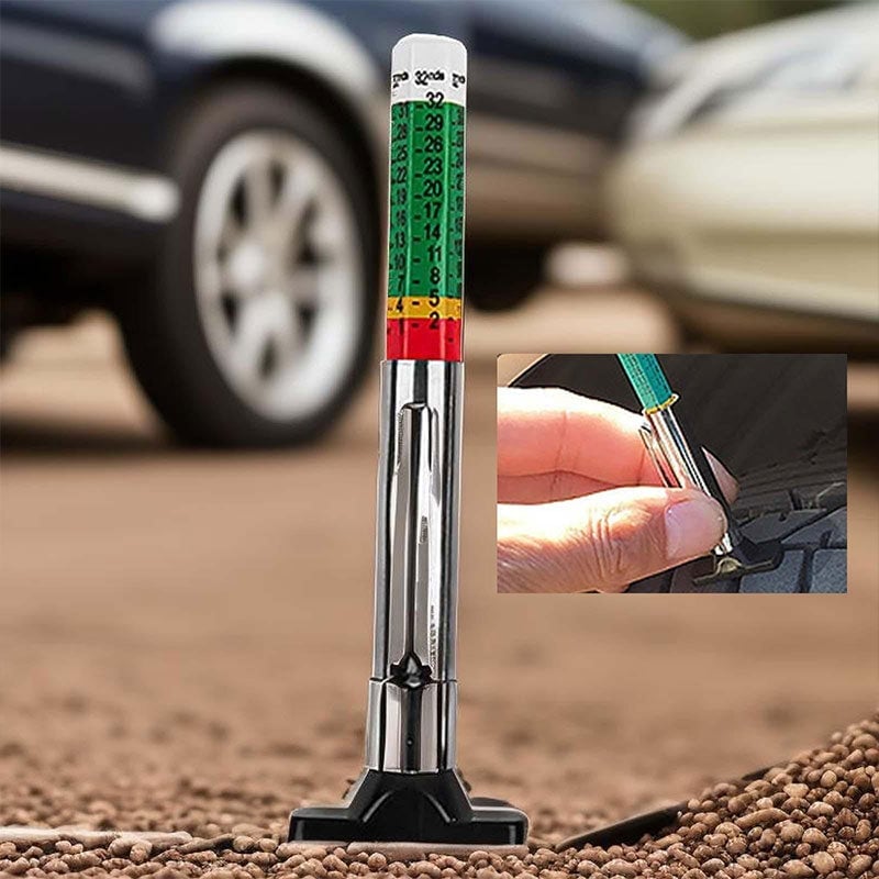 This three-color metal tread depth gauge lets you instantly see tire groove depth — green means safe, red signals risk. Pocket-friendly, durable, and easy for one-hand operation.